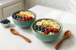 - Berry Chia Pudding (make-ahead): Mix 3 tbsp chia seeds + 1 cup almond milk + vanilla. Refrigerate overnight. Top with mixed berries and pistachios.
